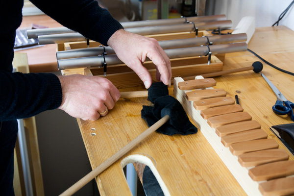 Einzeln gespielt erzeugen die Instrumente klare Töne mit sehr langem Nachhall.
